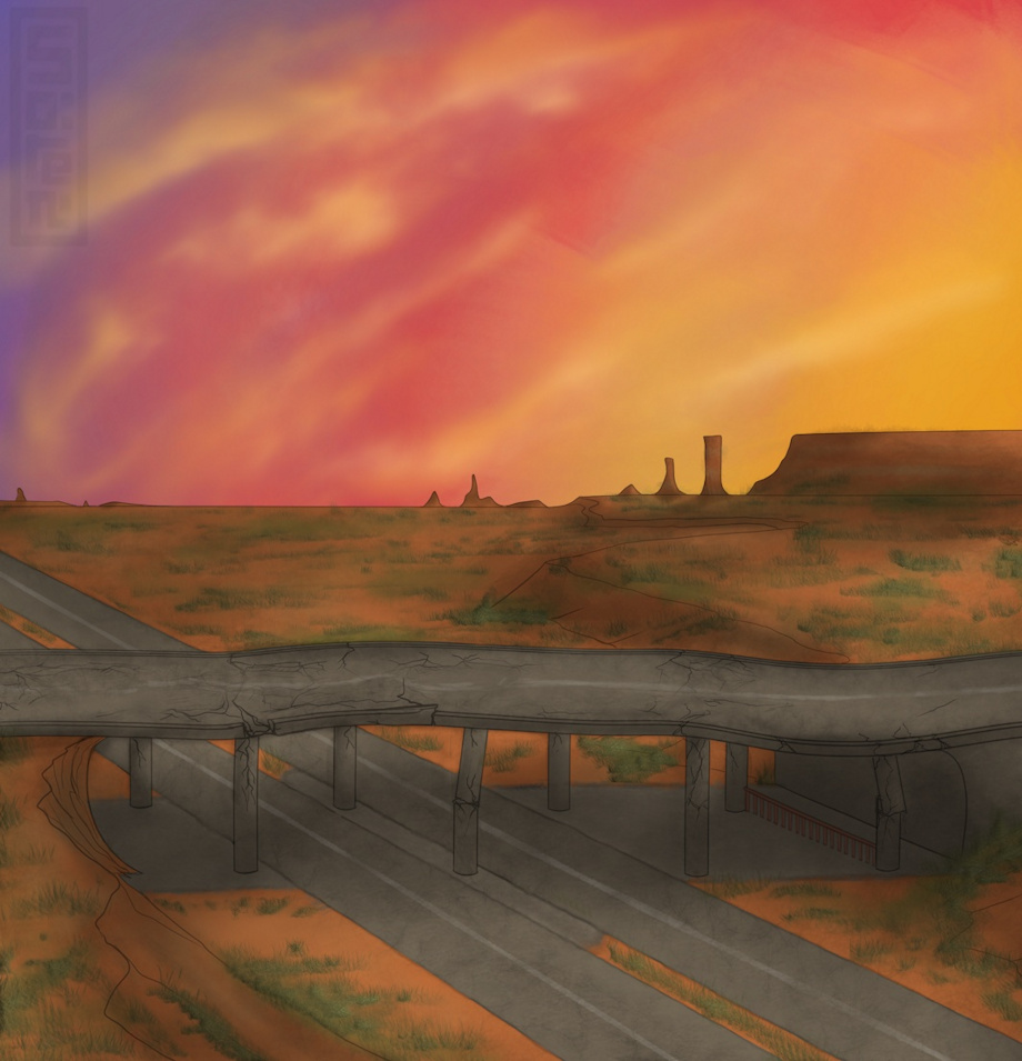 Commission for Krighsu! Featuring my bunny Caeleb taking a stroll through the desert. ...with some minor consequences for the local infrastructure.