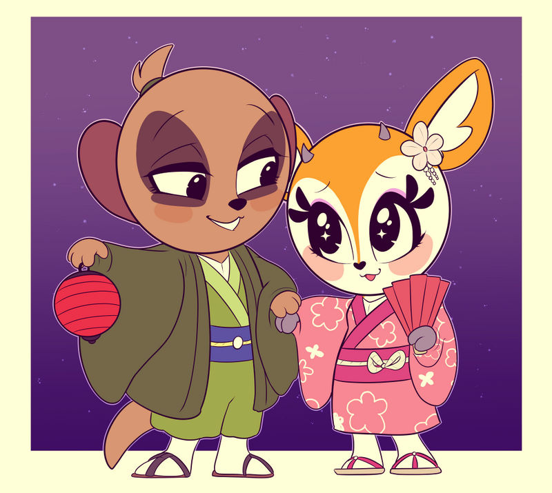 Komiya and Tsunoda enjoying time together in traditional Japanese clothing.