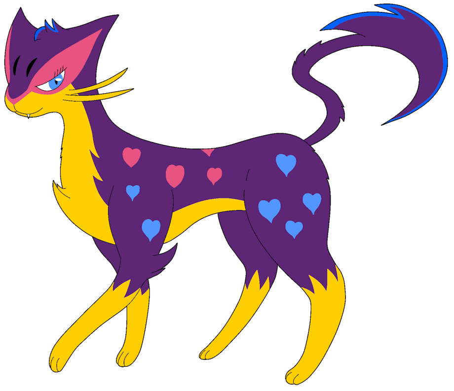 Information: It is the Mega Evolution of Sylvia, it is an Anthropomorphic Sylveon that will show pink fur that will start from the neck to the top where the legs begin. Mega Sylvia has Lasso (or Appendages) that are very long and a huge tail that is used to do the Slash Attack. In one of the bows (the bow that is located on the left ear) you can see the letters "M" and "S", these letters are the name "Mega" and "Sylvia". This character has pink diamonds that are electric, these diamonds are used to launch very harmful rays.