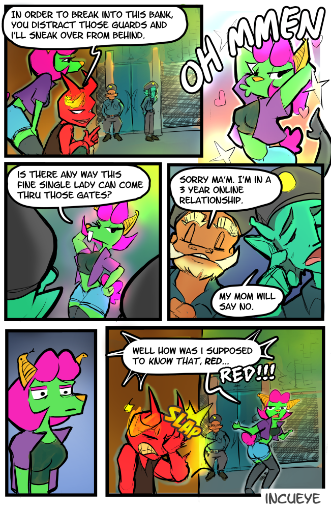 Catty and Red doing another heist but failed cause SOMEONE didn't get the memo.