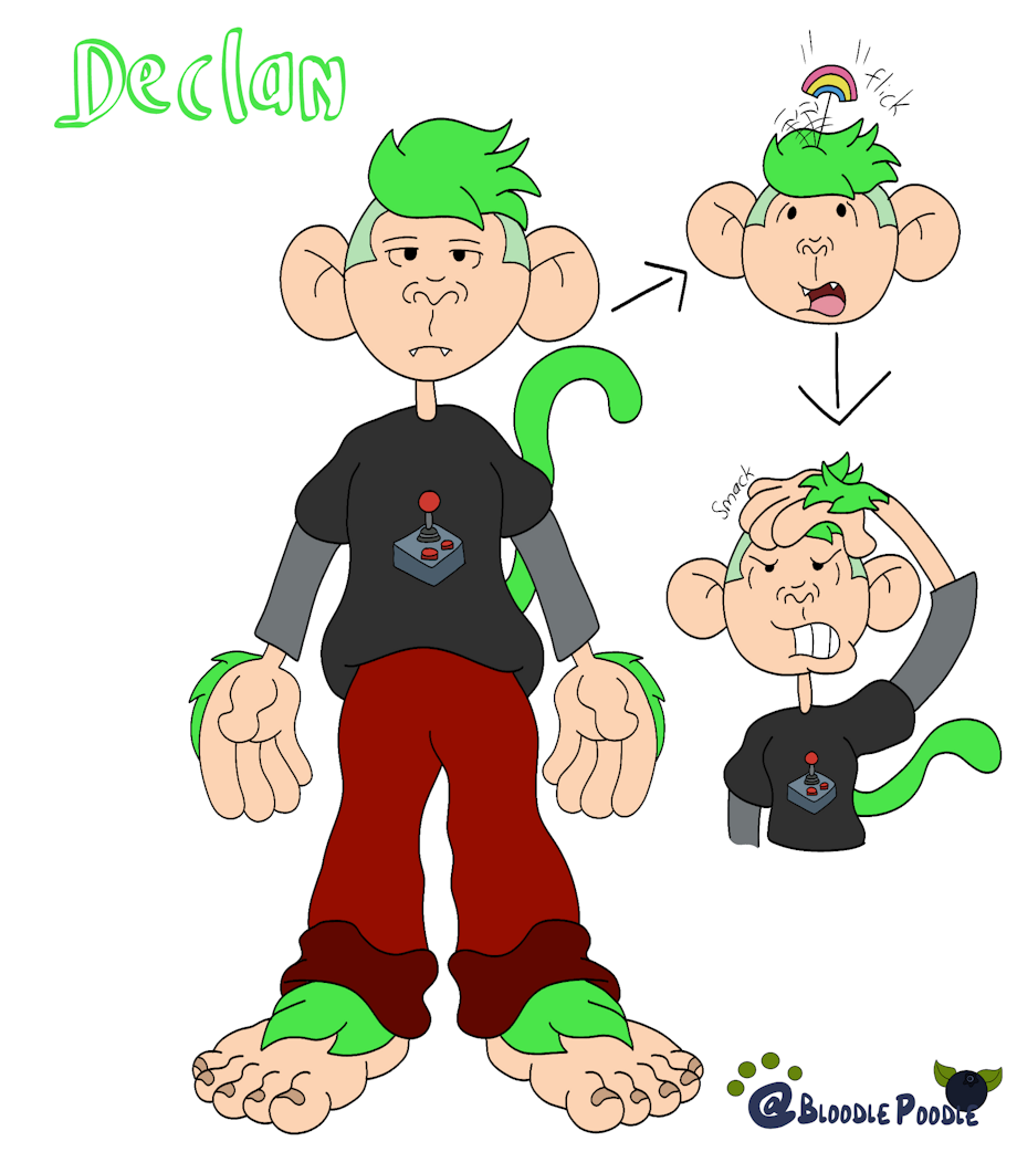 Meet the newest member of my KND teen team, Declan. He was a former toy store greeter that was the escaped victim of the adults trying to cut costs on costumes and cleaning by turning their employees into actual rainbow monkeys.