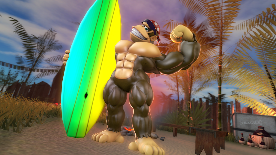 haven't done that much artwork of the stronk bois so here's a new one; i don't really have any dialogue for this post, but i'd like to imagine funky chooses to surf in the nude to avoid getting his clothing wet (he was nude in the SNES games after all, shame he lacks his medal here)