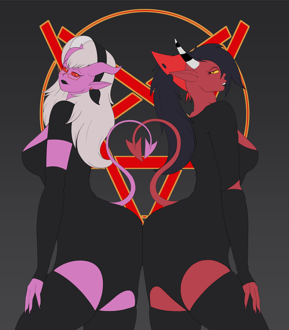 Commission for Platinummanxl on Twitter featuring Mrs. Mayberry and Sallie May. Both characters are owned by Helluva Boss and Vivzipop