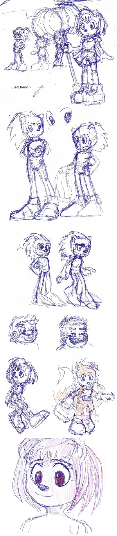 My right hand /arm still isn't doing so well, so I switched to my left. Had some fun results, so I thought I'd share some of it. This is all sorta "halfway there" anyway and just sketching around for proportions /designs for a thing, so the details don't matter. It's a little bit like kindergarten again with how the pen just runs away from you all the time, but it actually seems like I'm ambidextrous and just never made use of it.