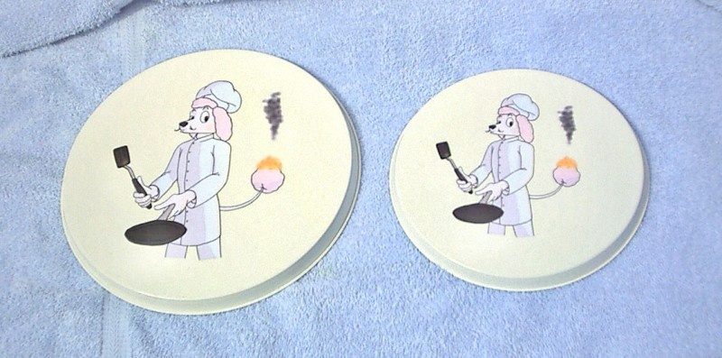 on stove top burner covers. Alas, they're a bit burnt nowadays as I simply applied stickers and oversprayed them with clear, heat-resistant Rustoleum. (All part of the learning process.) Ideally, I wanted them painted on, but didn't know how or where to do that.