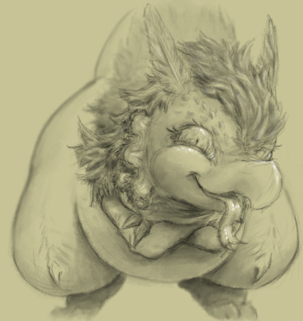 This was an old idea of mine that I drew while experimenting with colouring styles. The grayscale version works much better imo but they both have a certain charm to them. If you're wondering why the purple tongue, it's because she monches on berries every single day, to the point where they've permanently stained her beak and recoloured her tongue.