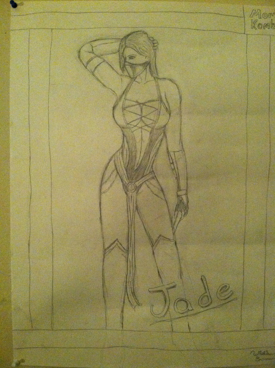 She is the protector of Princess Kitana who is the daughter of Sindel, who betrayed Shao Kahn which is Sindel's husband and emperor of Out World. This took me one hour and ten minutes since the poster is pretty big. In my Opinion, Jade is beautiful compared to Kitana when they both don't have their masks on.