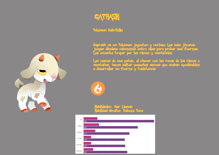 Today I bring a new Fakémon to expand a bit the dex based on Spain and the Canary Islands, this time, it is an initial Pokémon, a fire type called Caprash. You have a description of this Fakémon on my patreon: https://www.patreon.com/posts/51866422