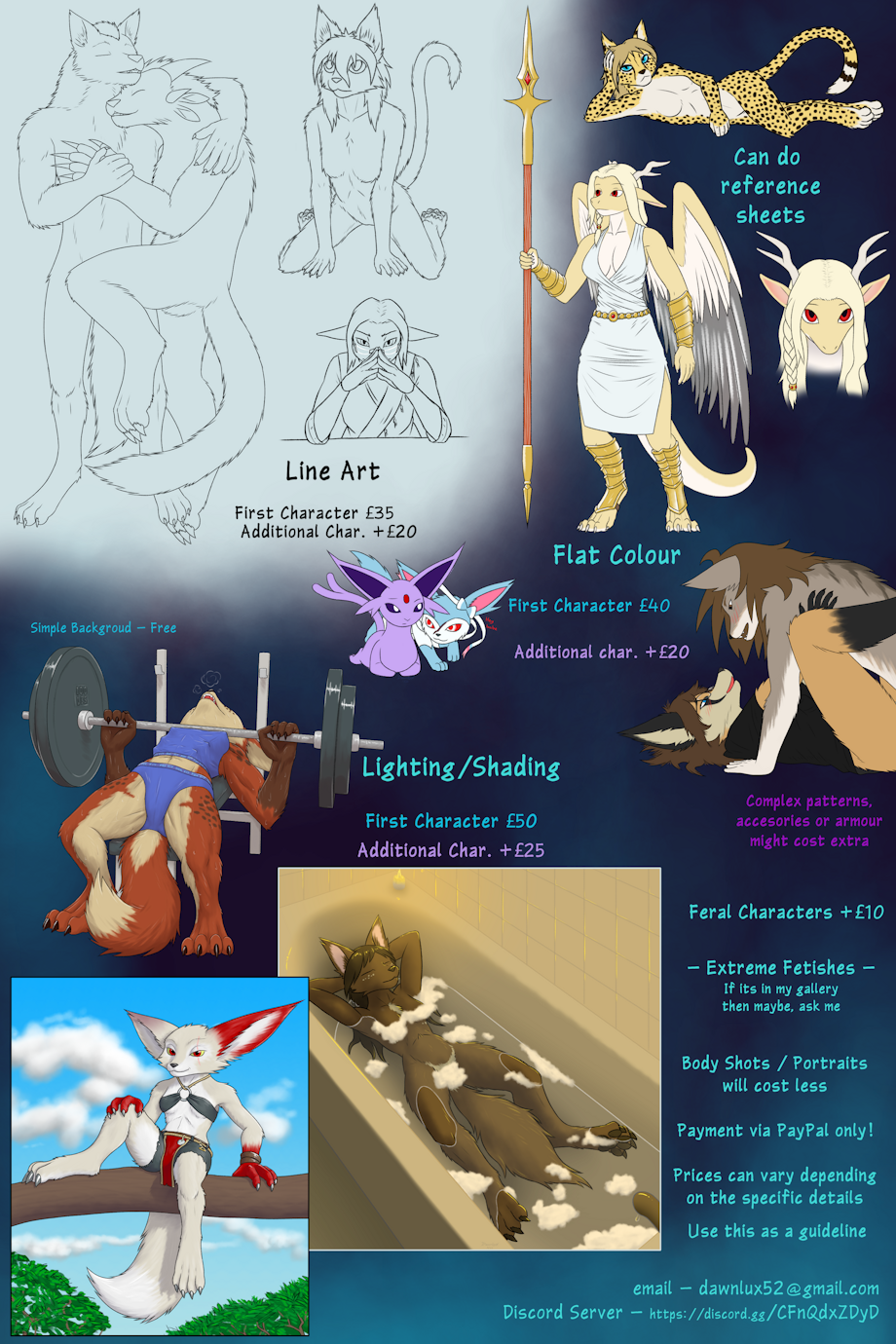 Join my discord server and then DM me from there - https://discord.gg/CFnQdxZDyD If you don't have discord, email at dawnlux52@gmail.com - otherwise, message me on FA or Inkbunny.