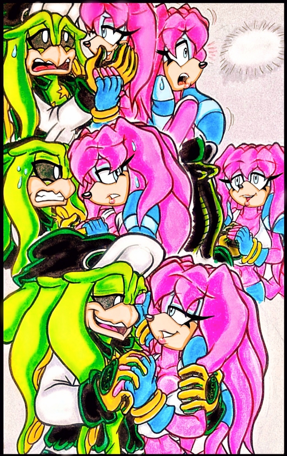 The pink echidna, in her fighting stance, is ready to unleash her anger on the evil octopus when suddenly, she hears someone calling her name.