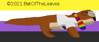 Crosspost from https://www.furaffinity.net/view/42216684/ which is again Wave Lutran as an adult in the future of the setting of my game idea. I have planned ideas about this future, but do not wish to reveal them. Anyway, here is an otter who works on radiation equipment for treatment of cancer. In a pride scarf that totally does not clash with a lab coat.