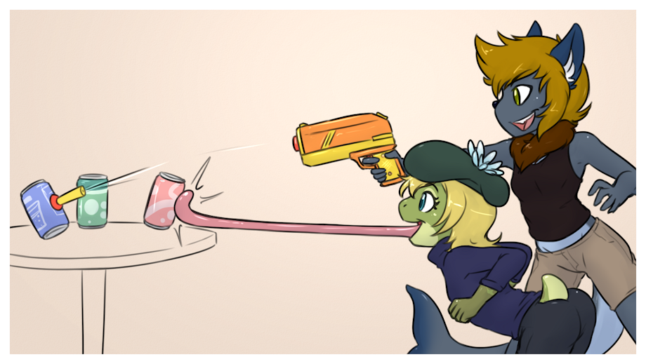 Roxanne and Nicky having fun doing some target practice with their respective weapon of choice.