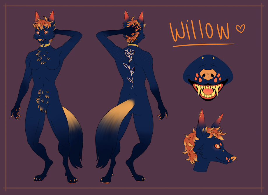 Ref sheet for my girl Willow! I currently have my ref sheet and icon commissions open, so this is an example of a ref sheet you could expect from me. Message me for commission info! Love u guys <3