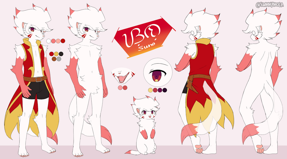 Appearance: Has white fur with pink tint. Red markings on his face are mandatory. He wears a red sleeveless robe with golden accents, black spats, and has a holster belt for sword.
