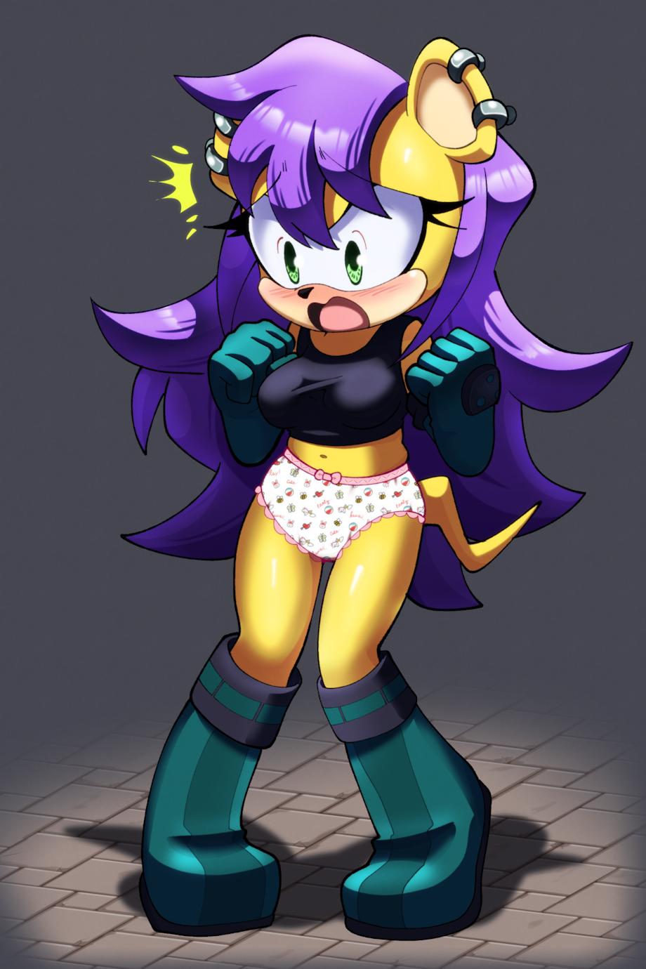 My guess is Mina was getting ready for a performance, but when the spotlight turned to her, she realized she forgot her dress or skirt. Classic gag right there.