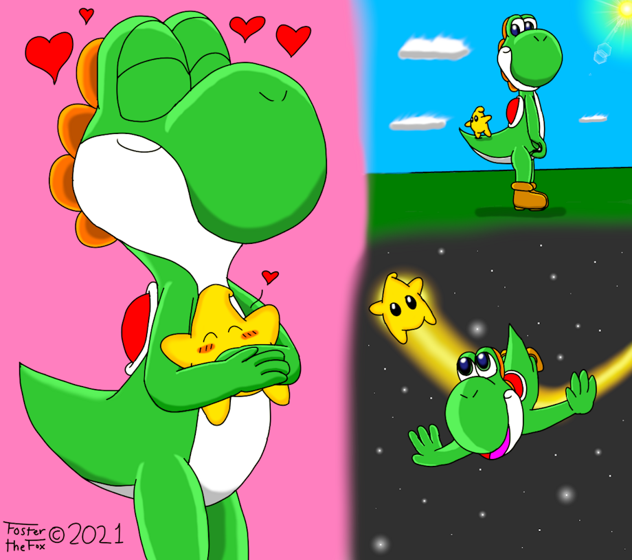 Yoshi has been my favorite Mario character of how cute he is. So when the Lumas of Super Mario Galaxy 1 and 2 came around, I know they would rival of how adorable they are. So what better way is to have these two together, and make it even more cuter.