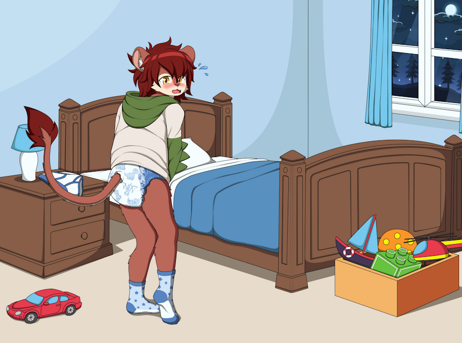 Lion boy Kellan little secrest suddenly has been exposed by his boyfrend, he trying to pulled his hoodie to hide his poofy diaper but it didn't work because his diaper butt too big