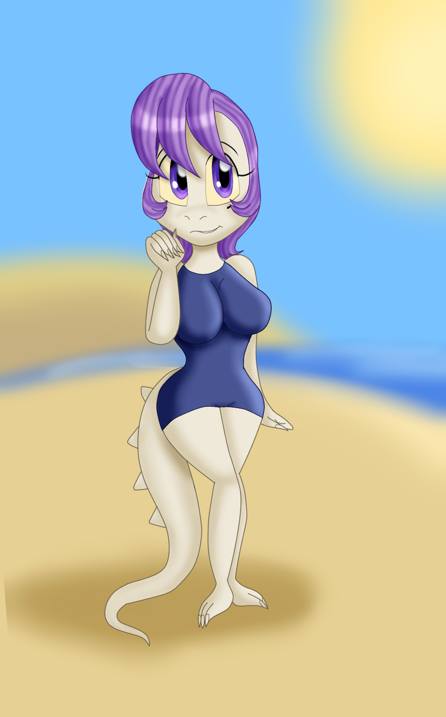 Even at the beach, Sabrina is such a shy girl, hehehe.