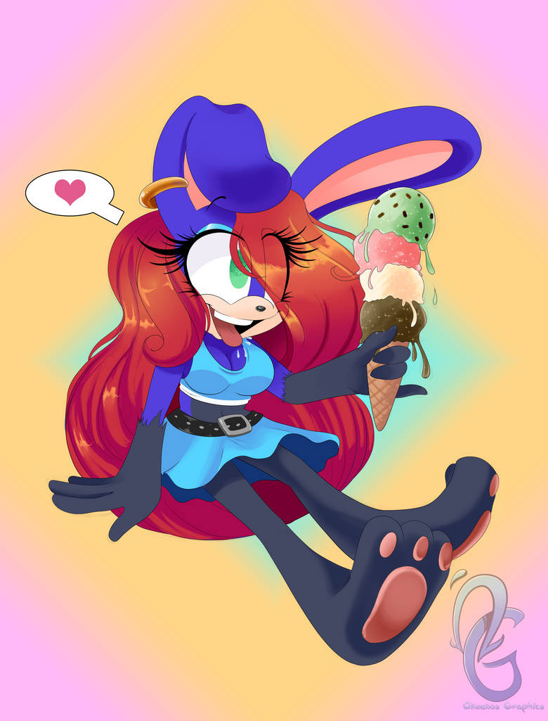Another commission but a little different than the usual sexy and lewd. Here we have a chibi Mimi. Or you can say that it’s a younger Mimi as well. Either way, you gotta admit she looks freakin adorable. Which is why she deserves a treat. One of her favorite: a frozen creamy treat, quadruple scoop.