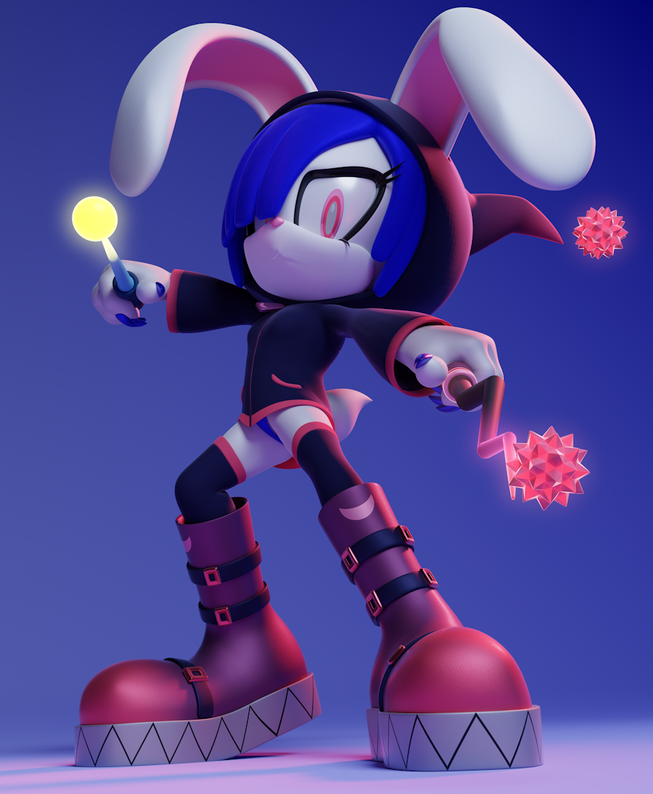 She uses special “Wands” to better focus and channel Chaos Energy into “Spells”; the Dark Chao-themed Wand being more proficient in channelling Negative Chaos Energy, though starting out, she's only been able to utilise the destructive powers of Fire, Ice & Lightning.