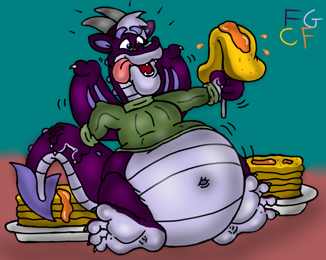 A cute revamp i felt like idly doodling Featuring My BFD (Big Friendly Dragon) Enjoying some pancakes based on the one i made here a while back^^.