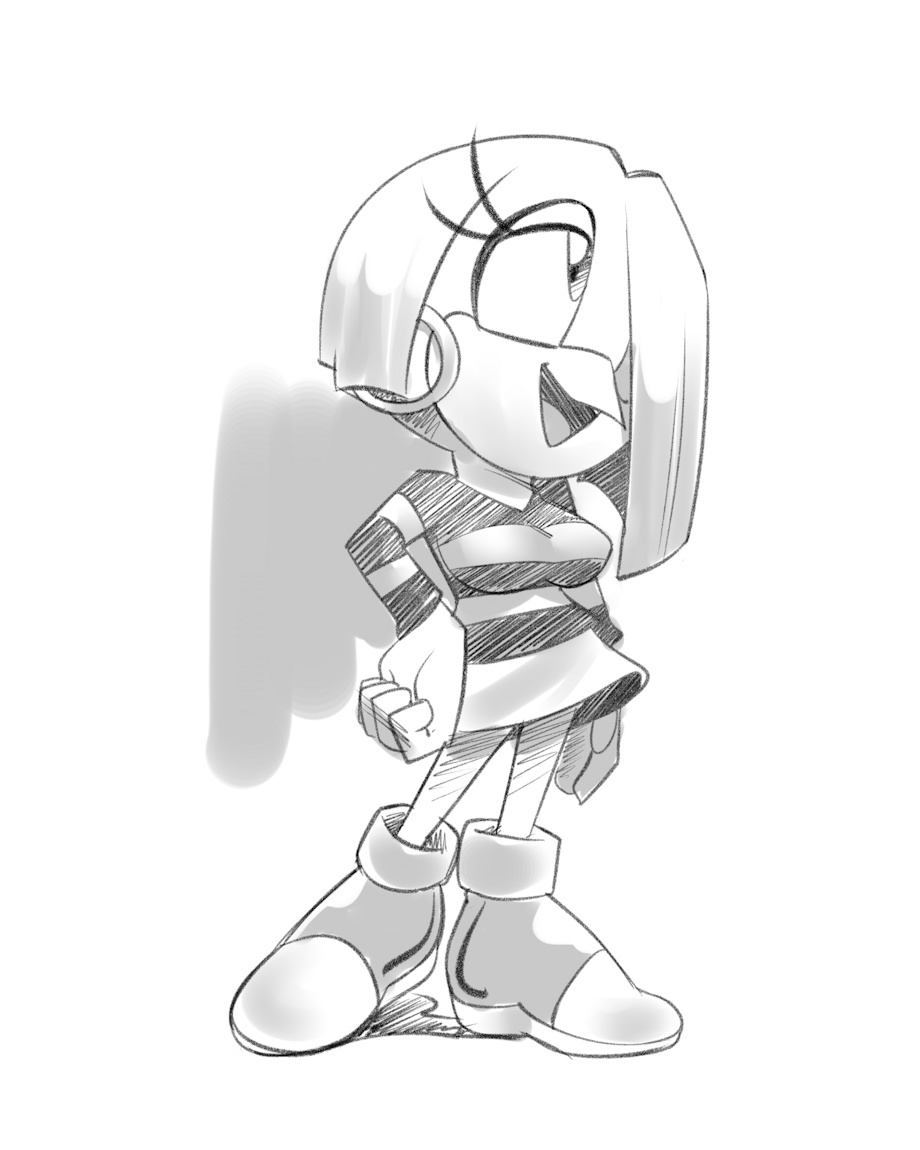 Design-wise, Shorty makes me think of a fusion between Tails and Conker (Conker's Bad Fur Day). Anyways, for clothes, I didn't know what to have him wear. But ultimately, I went with the clothes Archie's version of Ray the Flying Squirrel wore before his redesign; blue jacket and blue shoes with white stripes.