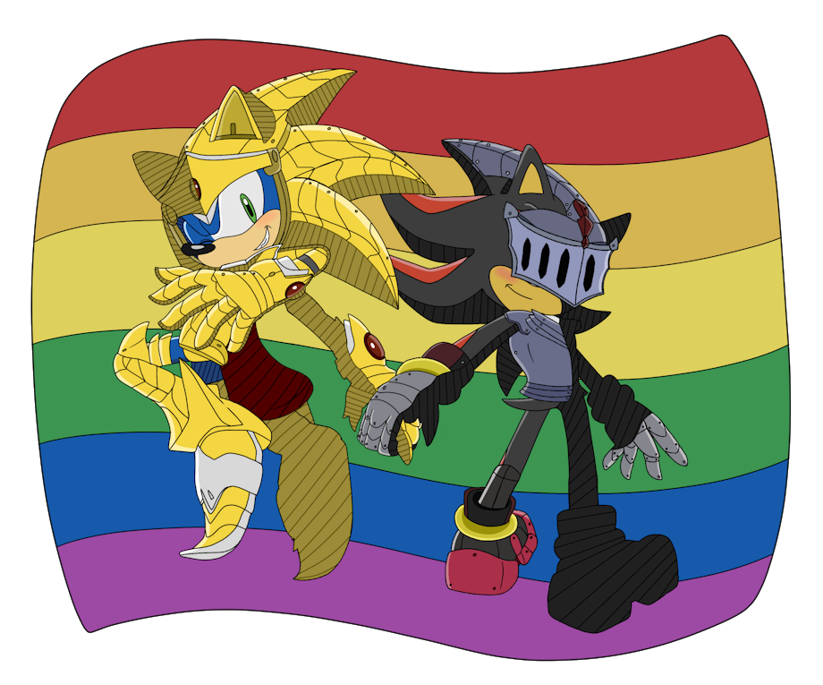 Soo, I had an idea not too long ago, to draw Excalibur and Lancelot in the Riders artwork style, and I decided to change it into a pride-type of image as well and this was the result~ :3