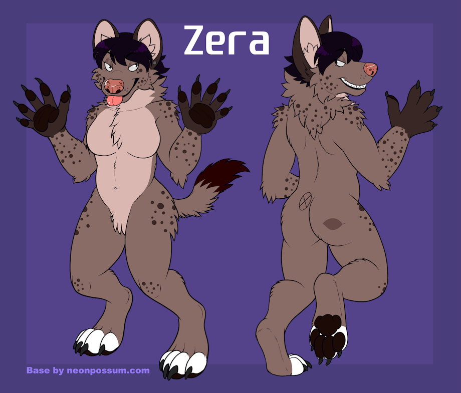 Meet my hyena fursona Zera. I've only drawn her a couple of times, but wanted to use her a bit more so I made her a reference sheet uwu. Hopefully you'll see more of her soon!!! Made with neonpossum on FA's PTU (patreon) hyena base I hope you like it? |