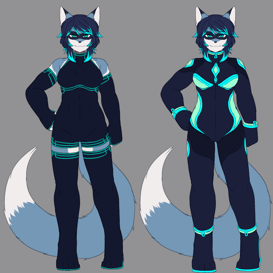 Both Alaska and Kyra are wolves; although they have a touch of both racoon and fox in their bloodline, which makes their fur patterns a little odd!