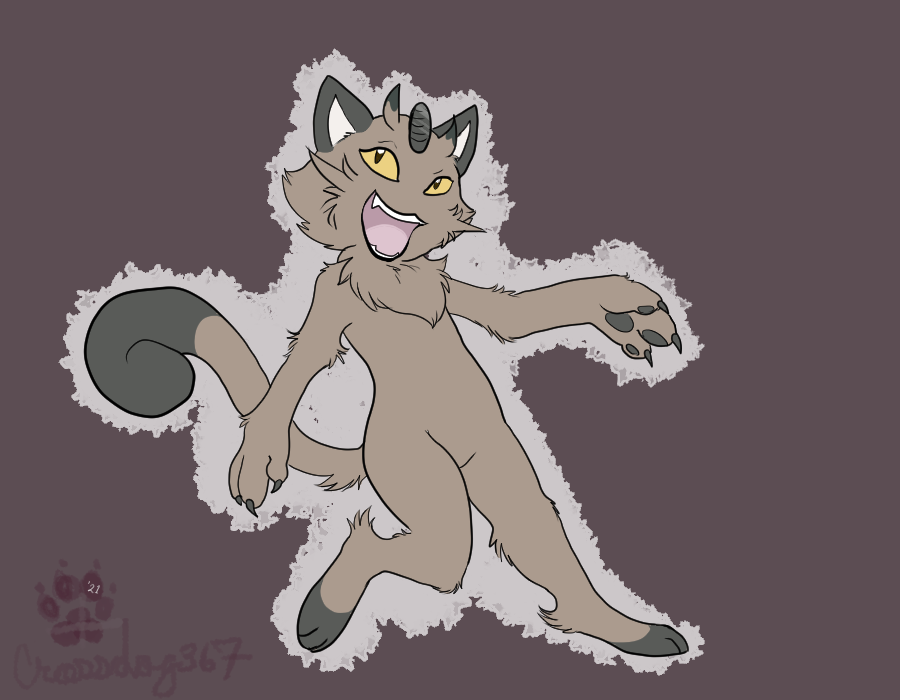 I wanted to draw myself a cute little Galarian Meowth. While I like them as little gremlins in game, I wanted to design one with a smaller beard, while still looking scruffy. Maybe her dad was an Alolan Meowth?