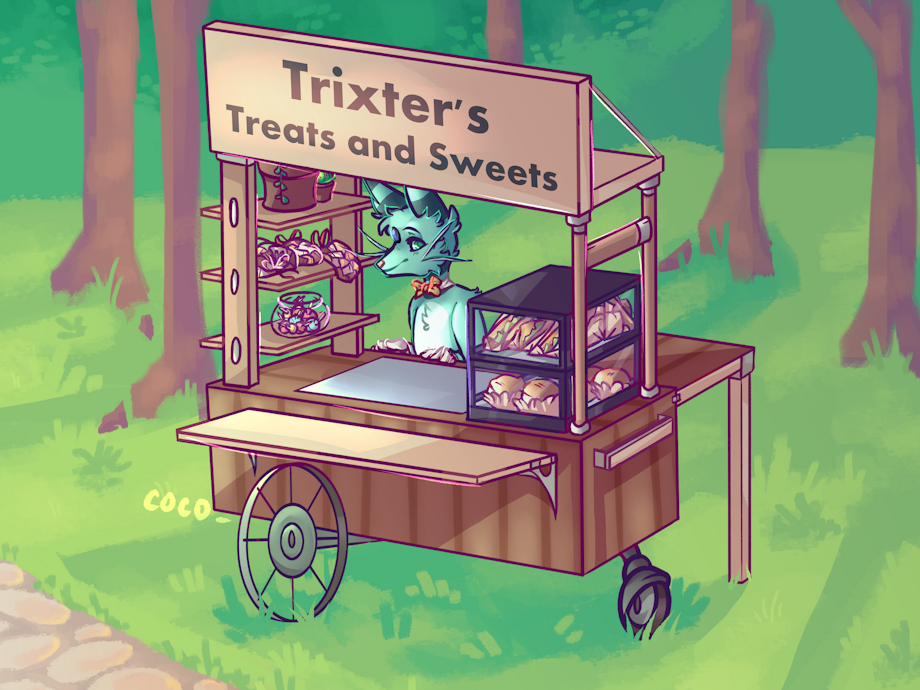 Just Trixter spending some free time selling treats to people taking a walk in the park.