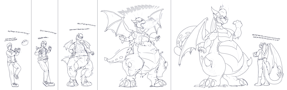Danny tossed me what I thought was a football, but as it splashed into my chest and transformed me into a familiar chubby dragon dad, he explained that it was a "TF goo egg"! ...I hope he reimburses me for clothing!