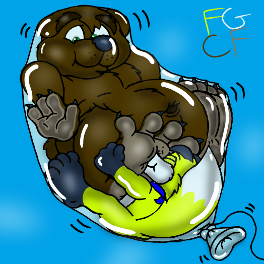 featuring Louie snuggling up tight to Verns Big Ol Burr paws whilst in tight balloon together.