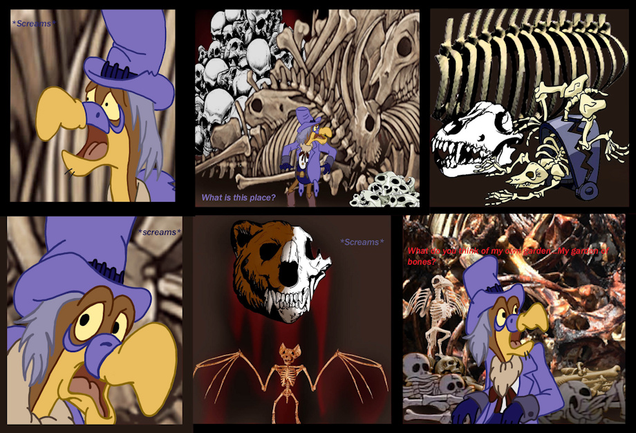 I wonder if anyone has remembered the story of Bluebeard where the woman enters the forbidden chamber that holds the truth to what really happened to all the wives that disappeared without a trace, revealing that they were all killed in cold blood for discovering his deadly, horrifying secret. Well that's the same feeling Boot Hill is now about to face right after he lands on the ground, littered by what he doesn't know yet to be more than a hundred skeleton corpses as he struggles to get his eyesight in focus to find out where he is at. And when he does, he faces a horrifying discovery in what happened to all the others before him that never made it out of Skull Mountain alive, after they too had tried to take the silver out of there.