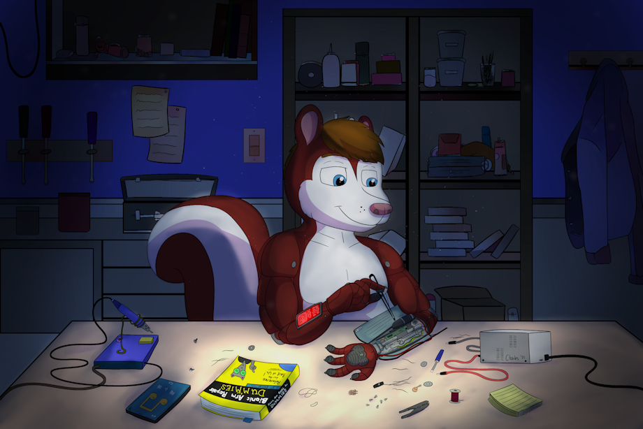 EricSkunk doing some repairs and maintenance on his tool-filled bionic arm. Need to have that in tip top shape if hes going to have the stuff he fix be able to be in tip top shape!