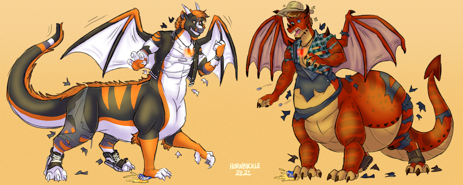 and I transformed into dragon-taurs after consuming the beverages and stomping on the empty cans with our forepaws!
