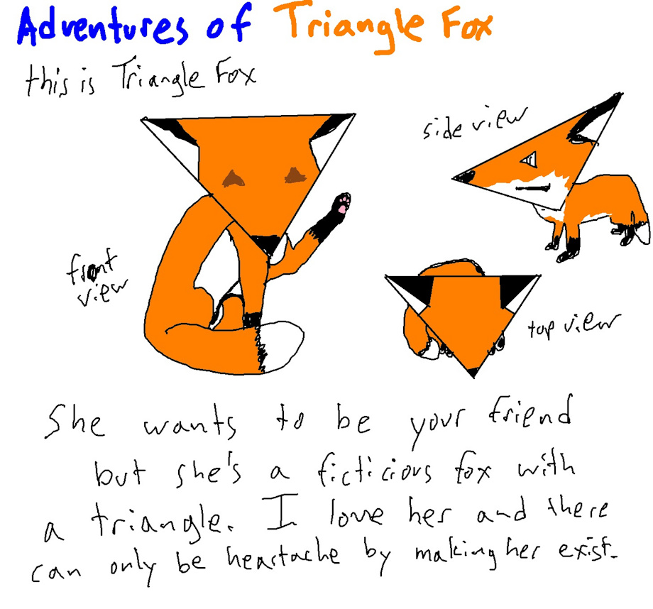She wants to be your friend but she’s a fictitious fox with a triangle. I love her and there can only be heartache by making her exist.