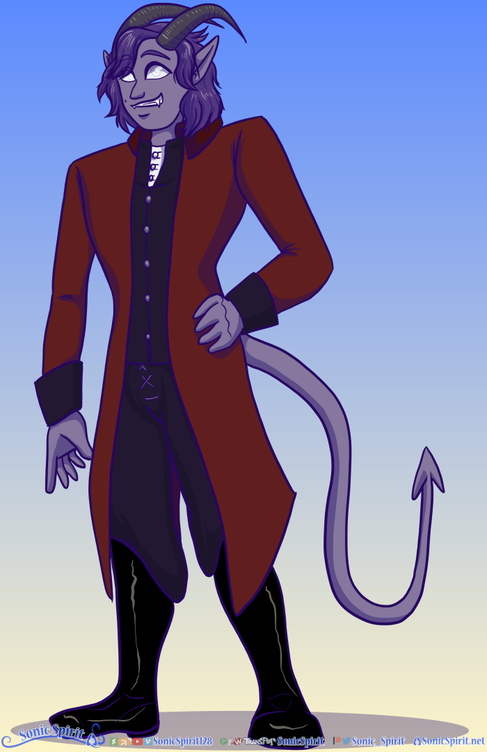 Commission for Zacs of his DnD character Daithi, a tiefling who, right after I delivered this to Zacs, ended up with a muzzle! Sooo, did a quick edit to update him with that. ^_^ Hey, I think he looks good.