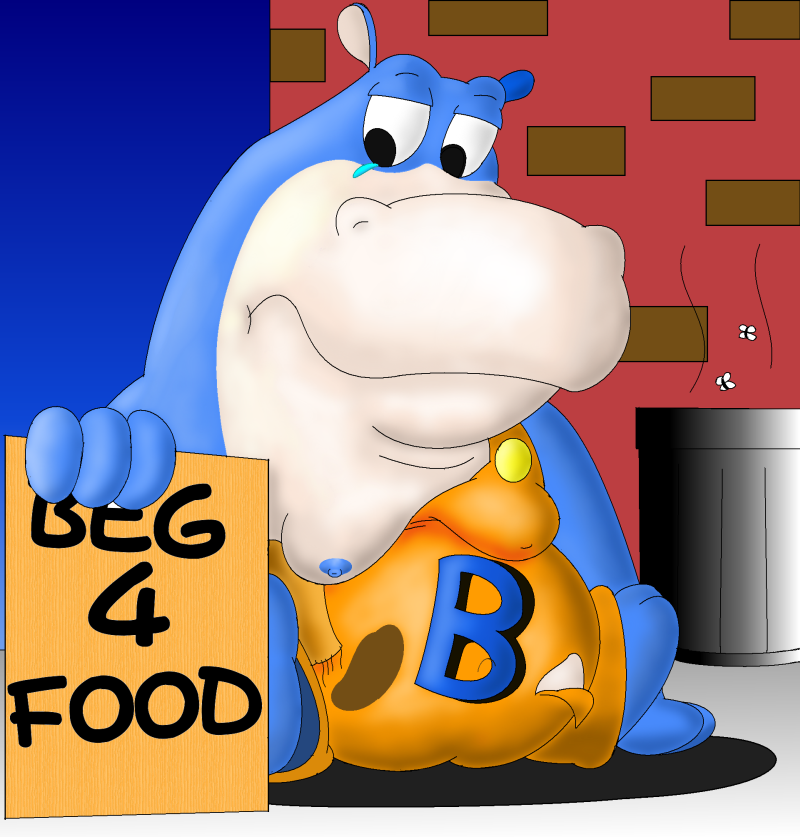This poor mascot is out of work thanks to his former **** company failing to do service for there customers. Is there anyone here to help this poor chubby hippo?