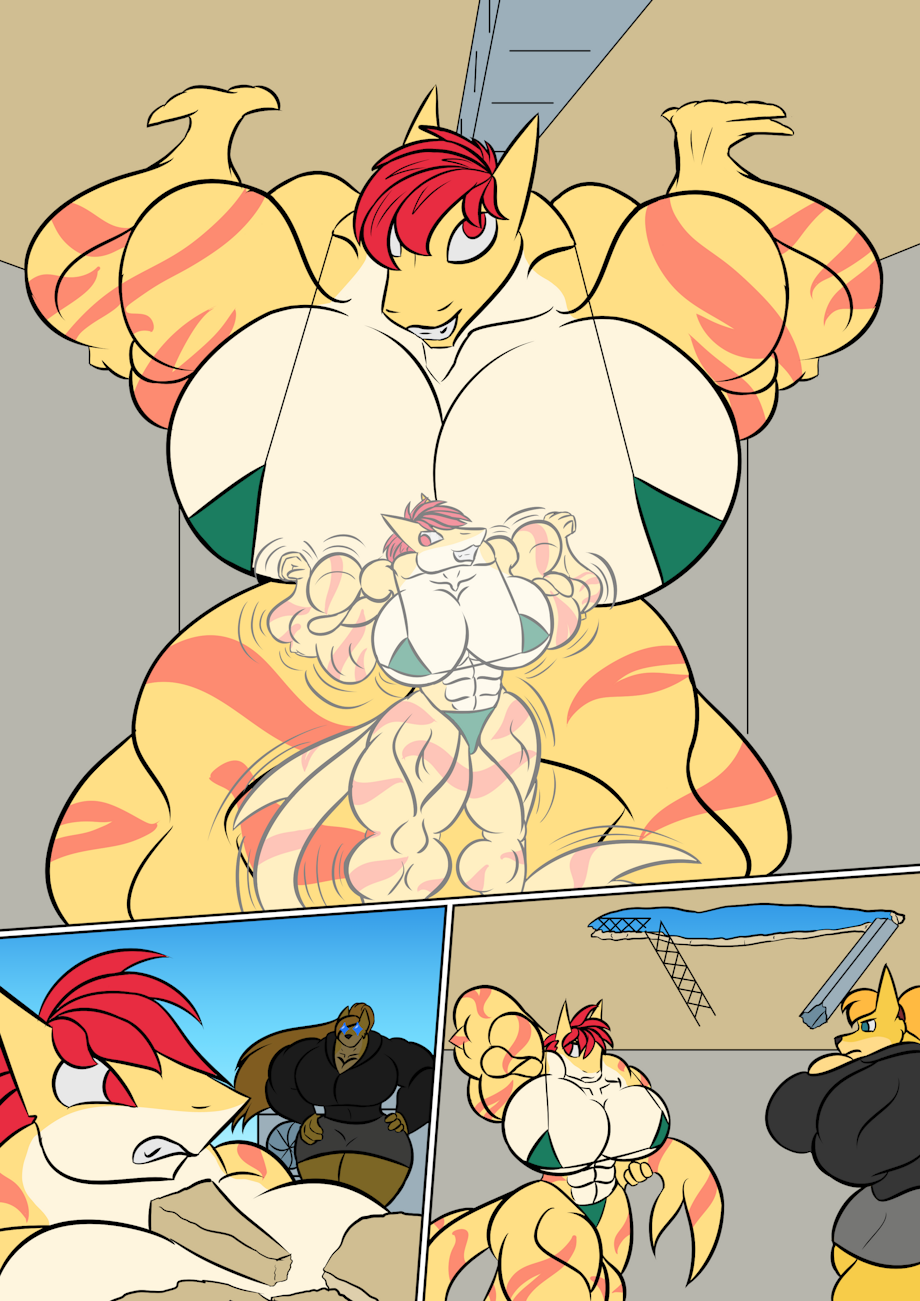Mere instants after the rampage begins, she bursts through the roof of the labs that birthed her!
