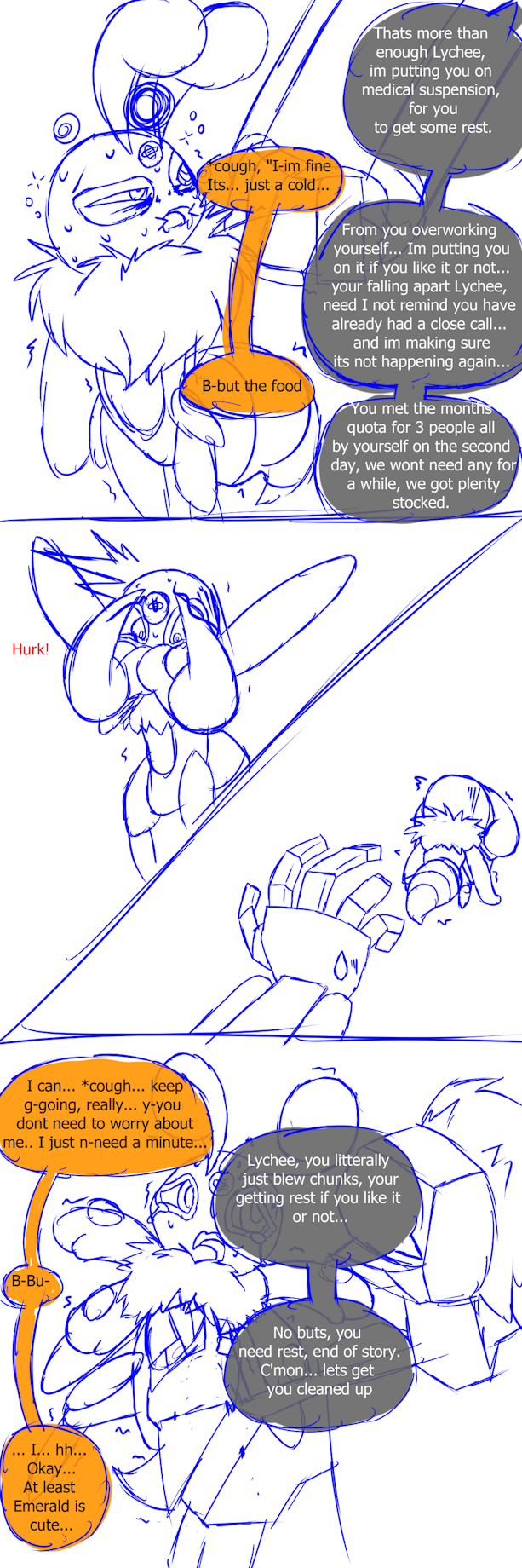 This shows how stubborn Lychee can be in regards to her working habits, even when she is on deaths door she still wants to do her part... Lychee has had a complete cardiac failure before now because she is putting so much stress on herself... She was thankfully however, resuscitated.