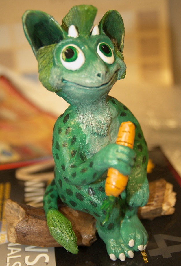 I believe it was papier-mache with a twisted wire framework. I can check when I got home, because unfortunately it suffered breakage when I moved it to the UK (it's sturdy enough, but my packing wasn't) and I haven't yet fixed it. Update: Fixed with superglue! And it was ApoxySculpt and acrylic.