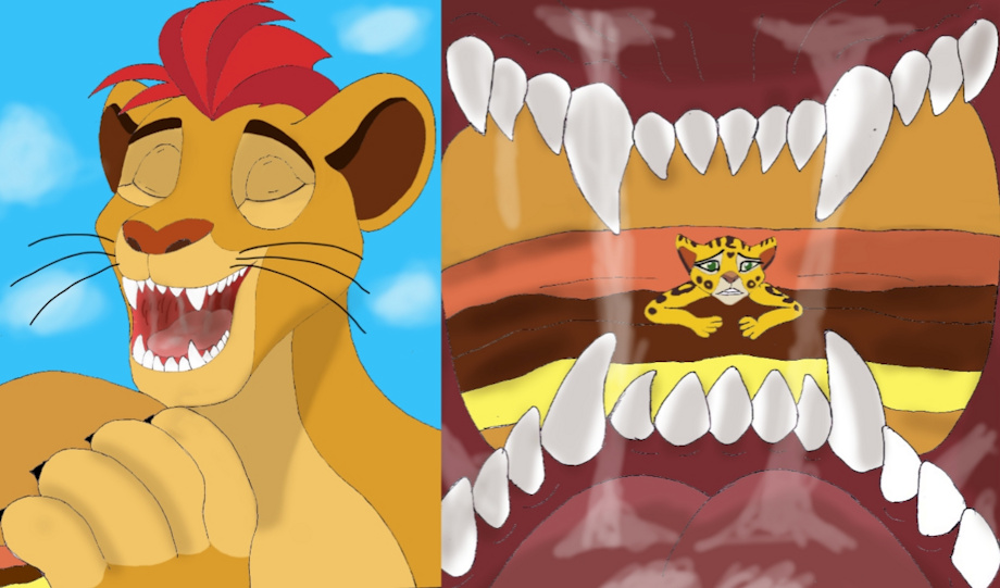 Although Kion did not know that this sandwich had an extra ingredient, while with Fuli, she was already preparing to enter her mouth although a feeling of anguish came to her, not only by the fact of seeing the huge and sharp teeth of her boyfriend, if not in the explanation that he will give you as soon as he has finished his expedition in the belly of his Boyfriend