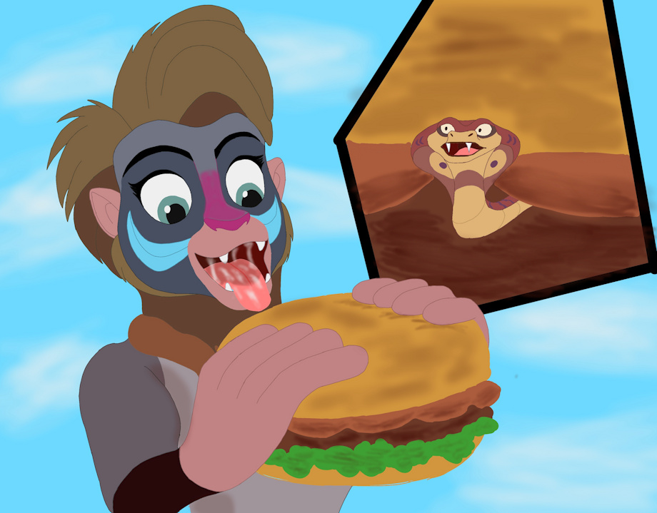 Makini from her side only heard a slight noise behind her but she did not care as she picked up her hamburger and took it to her hungry and wet jaws