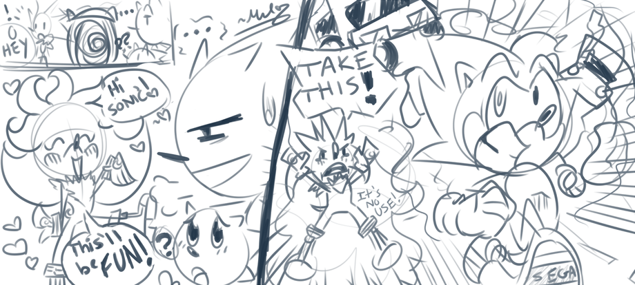 So, Sherlock and John, Sonic-style! (Because Chaos knows I can't draw human-beings quite that well... yet.) Kind of like a crossover. Holmes is a... hawk (I guess)... and Johnny-boy, a dog. Yes, that seems about right.