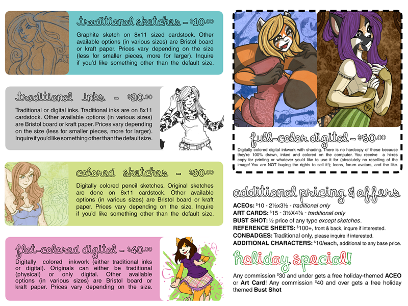 New commission information! Mainly for my discounted holiday prices (and bonus stuff, too!).