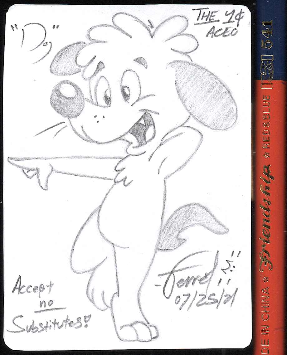 I drew Lenny with my Wallace Zephyr, and delineated him with my Twenty Grand pencil. As for the featured pencil, well... I used it to sign the card and to draw Lenny's whiskers. =^..^=