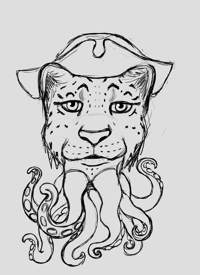 Started working on my badge for MIDFur while at the pub meet last night. The theme is Heroes and Villains, so I decided that I should draw myself as Davey Jones from Pirates of the Carribean. My beard forms tentacles in real life anyway, just not quite as fleshy as these ones. Worked on this for just a bit less than one hour.