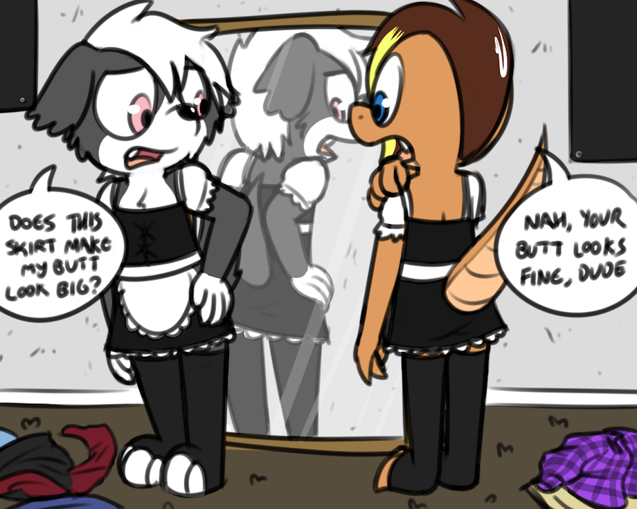 another doodle i did, this one of Pink and Gordon doing a little crossdressing. It was a dare from their girlfriends, that's all, i swear