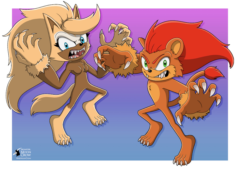 The Lemur admired Sonic the Hedgehog a lot, even after his disappearance; she had a lot of hope for him to return. The Wolfess respects him but seeing like this... if not for the mask her expression is pure shock. The Lion... well, he has his problems with the Hedgehog, he accidentally misnamed the Lion so many times that is getting old but as the same as the Echidna, secretly respects the Hedgehog. But now the Blue Hedgehog has become their enemy (At least is in a trance or transformation and not a betrayer as the Lion and Wolfess hate that with all their souls).